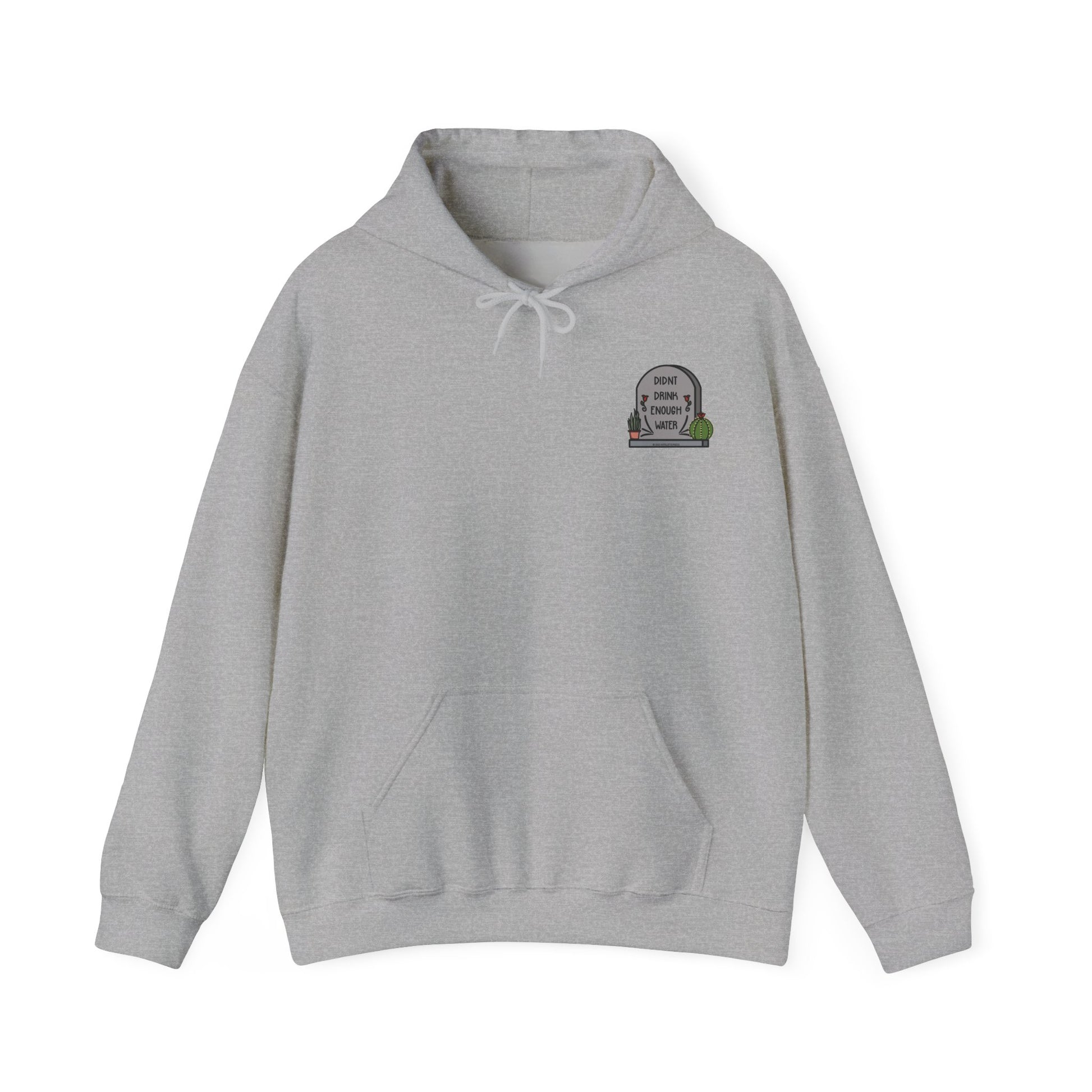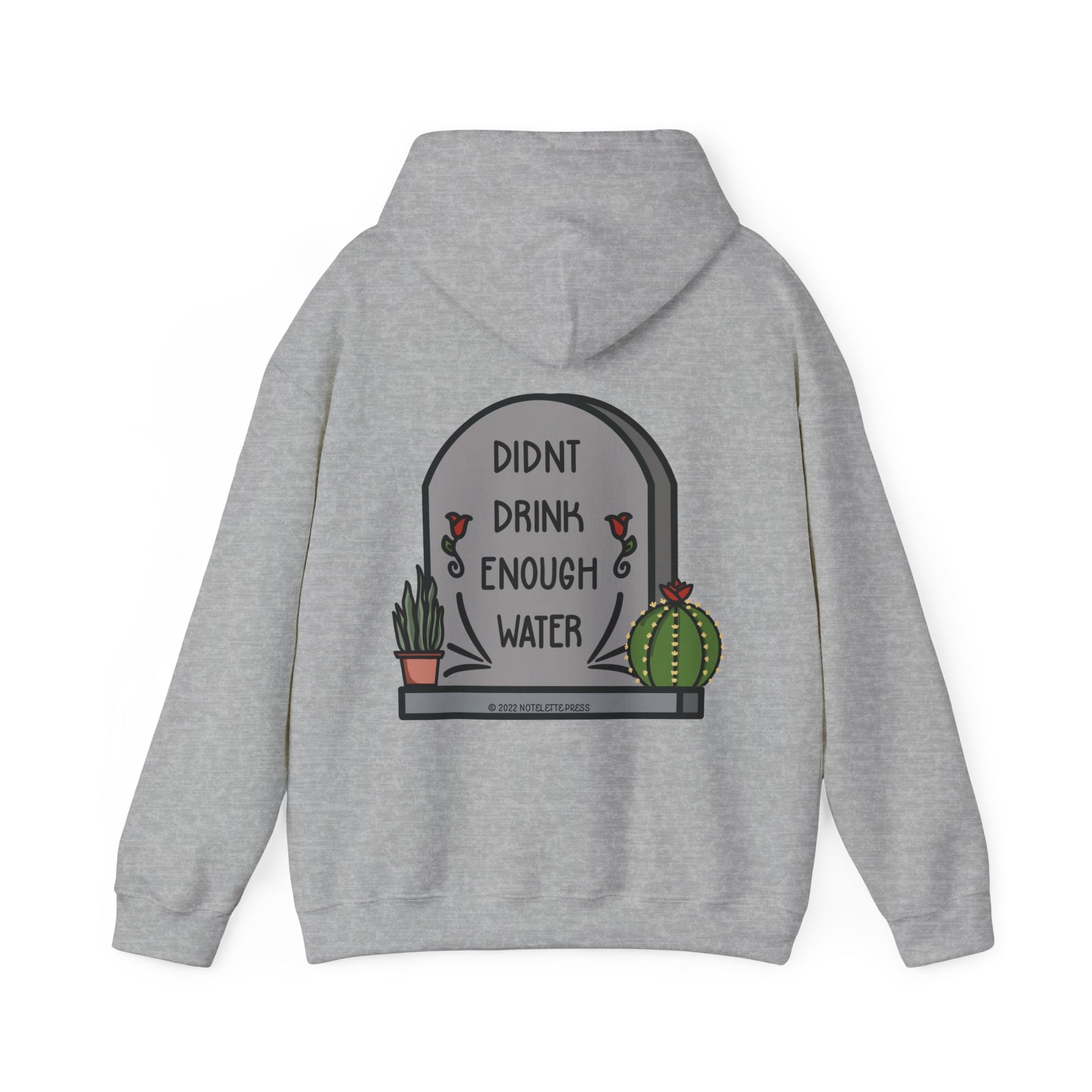 Meet your new go-to hoodie for those days when hydration didn’t quite happen. This cozy, soft blend hoodie features the playful “Didn’t Drink Enough Water” tombstone design wrapped in cute succulents, because sometimes you just need a comfy reminder with a wink.