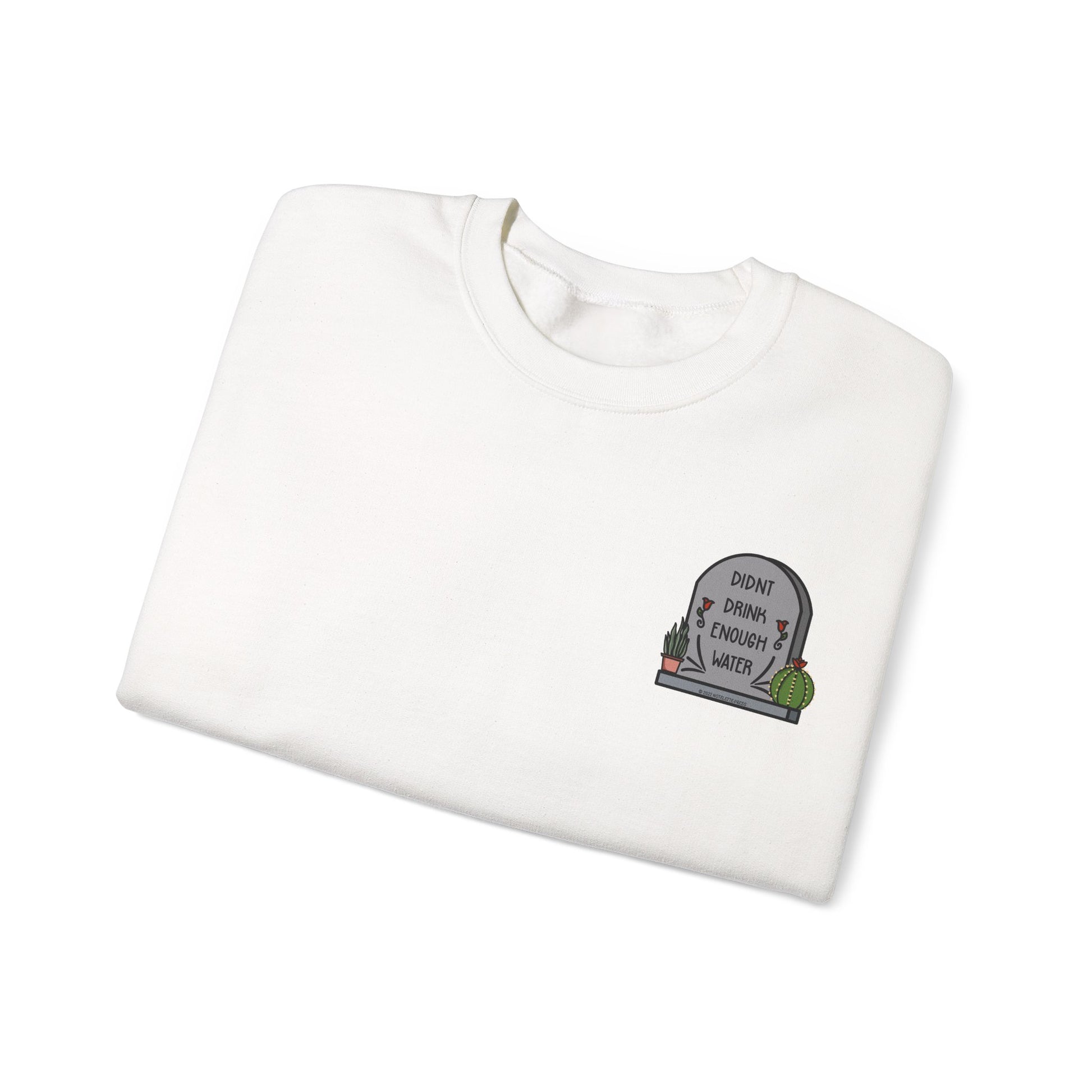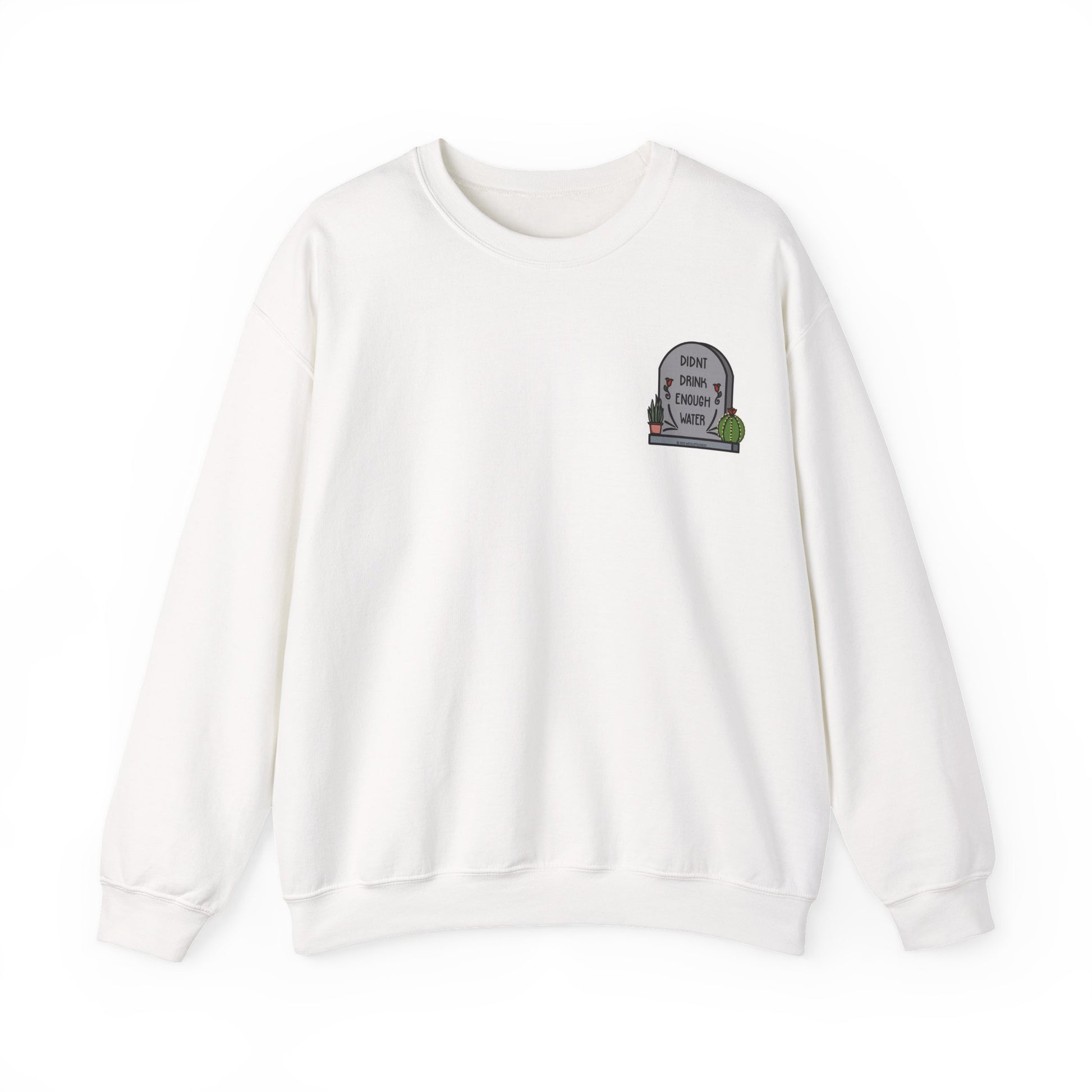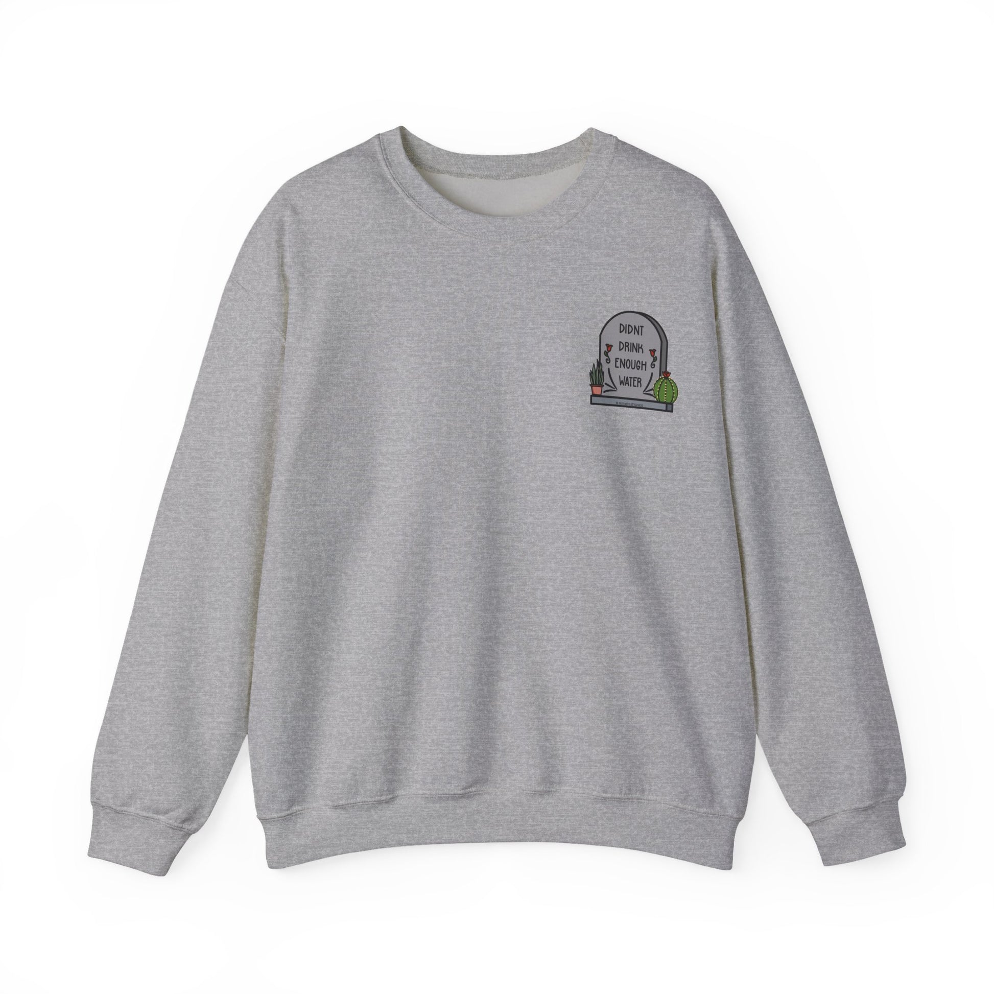 This crewneck sweater is your new cuddle buddy for those days when hydration wasn’t top of your to-do list. Soft, warm, and just the right amount of oversized, it features the cheeky “Didn’t Drink Enough Water” tombstone design wrapped in cute succulents, because self-love includes forgiving your forgetfulness. Made with durable stitching and a comfy ribbed collar, this sweater keeps you cozy while serving serious style and humor. Perfect for lounging, errands, or showing off your witty side wherever you go.