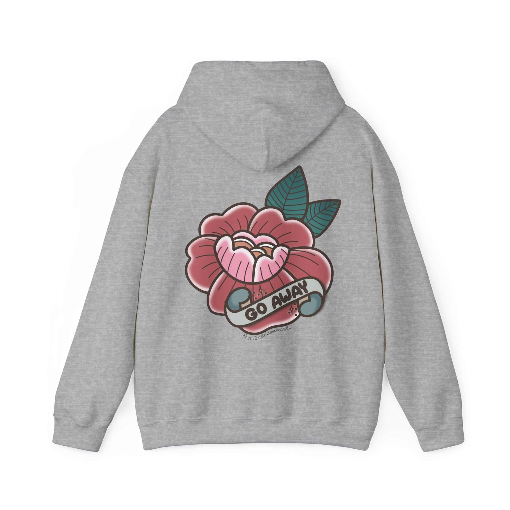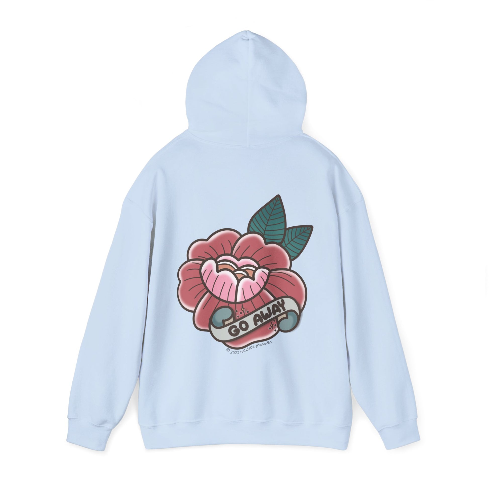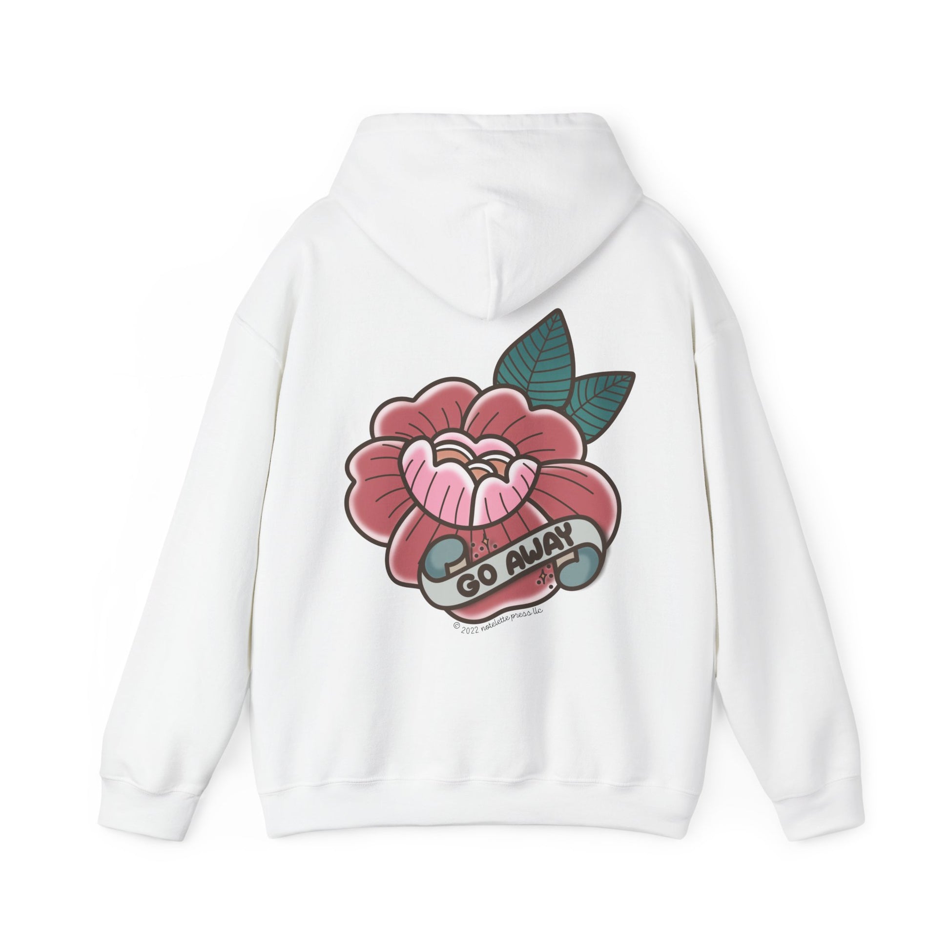 Make a statement in comfort and style with our Go Away Flower Hoodie. This cozy hoodie features a vibrant, tattoo-inspired flower graphic with a cheeky “GO AWAY” banner, perfect for those days when you want to keep the world at arm’s length. Printed on soft, premium fabric, this hoodie is designed for warmth and everyday wear.